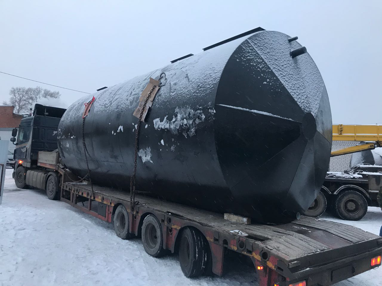 Габариты очистного сооружения: 3 емкости длиной 11600 / диаметром 2400 / весом 20700 кг.
